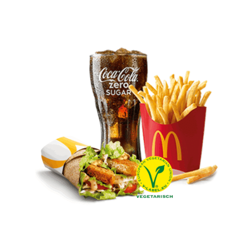 Onze lekkere McChicken is ook vegetarisch verkrijgbaar. Kies je voor Meatless, dan krijg je dezelfde burger, maar we vervangen de krokante kipfilet voor een burger van Valess. (Valess is een vleesvervanger gemaakt van zuivel) *Bij bezorgen betaal je een plastic toeslag (koude dranken (€0,15)). Of je kiest voor een optionele statiegeldbeker (koude dranken (€1,00)).